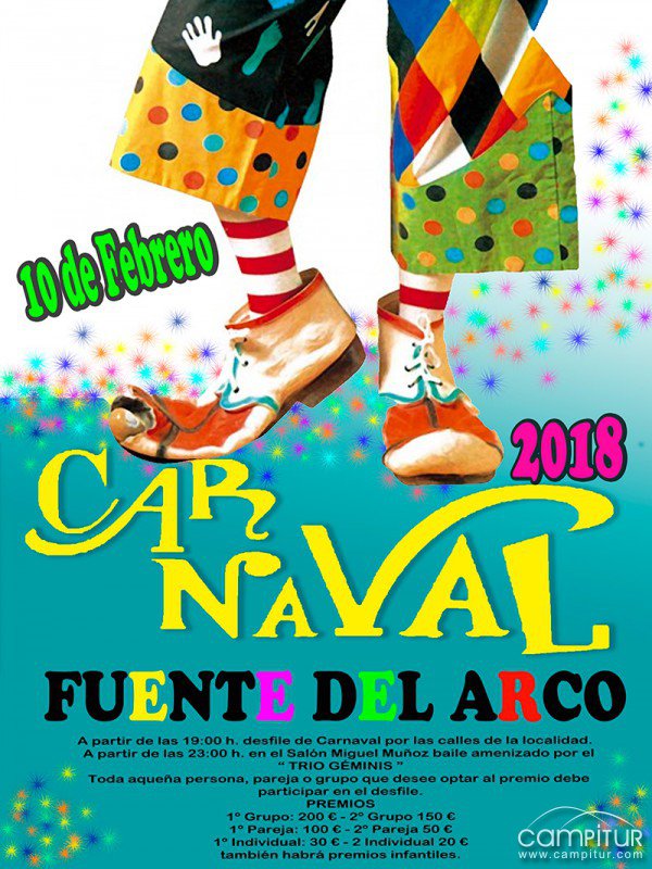 El sábado, 10 de febrero, Fuente del Arco celebra su Carnaval 2018, y para ello desde el Ayuntamiento se han programado infinidad de actividades lúdicas.