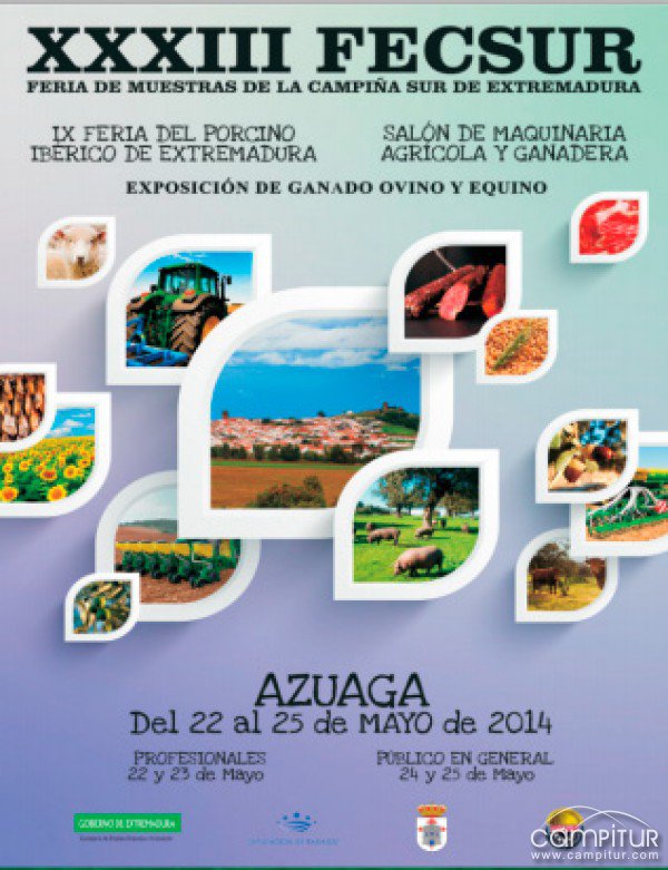 Como todos los años, enmarcada dentro de la Agenda Cultural de Azuaga, en concreto para el mes de mayo, la localidad pacense acoge una nueva edición de su Feria de Muestra, exactamente hablamos de la celebración de la XXXIII Fecsur, IX Feria del Porcino Ibérico en Extremadura y Salón de Maquinaria Agrícola y Ganadera.